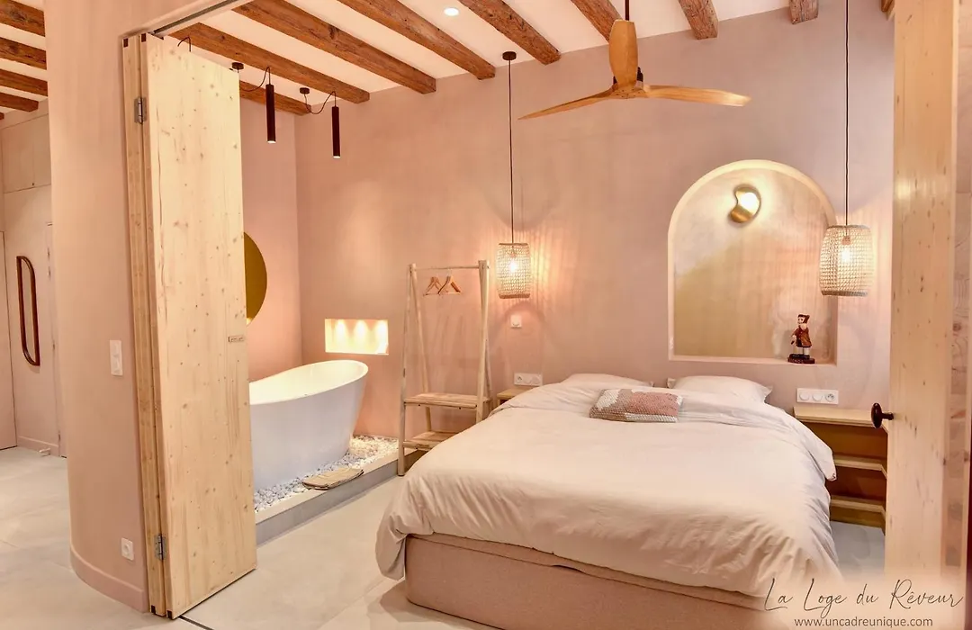 The 1-room La Loge Du Reveur - Spa - Vieux-Lyon apartment is nestled in 5th arr., which surrounds the ornate Basilique Notre Dame de Fourvière and centuries-old Cathédrale Saint-Jean-Baptiste, noted for its astronomical clock, around a 14-minute stroll from the lively Les Pentes de la Croix Rousse. Situated in the very heart of Lyon, the apartment comes with private car parking on site.